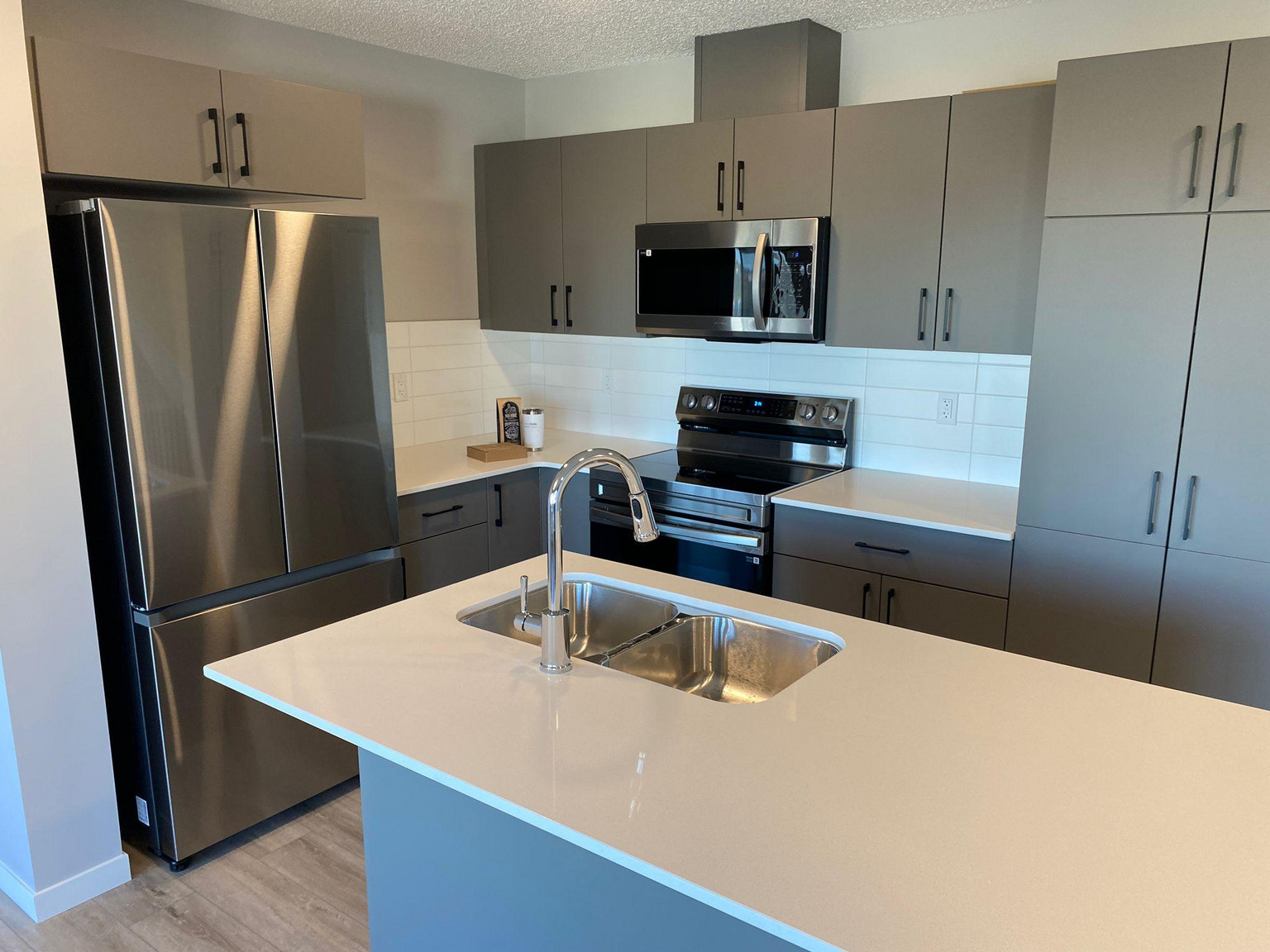 - Modern kitchen with stainless steel appliances, quartz countertops, and quality cabinetry