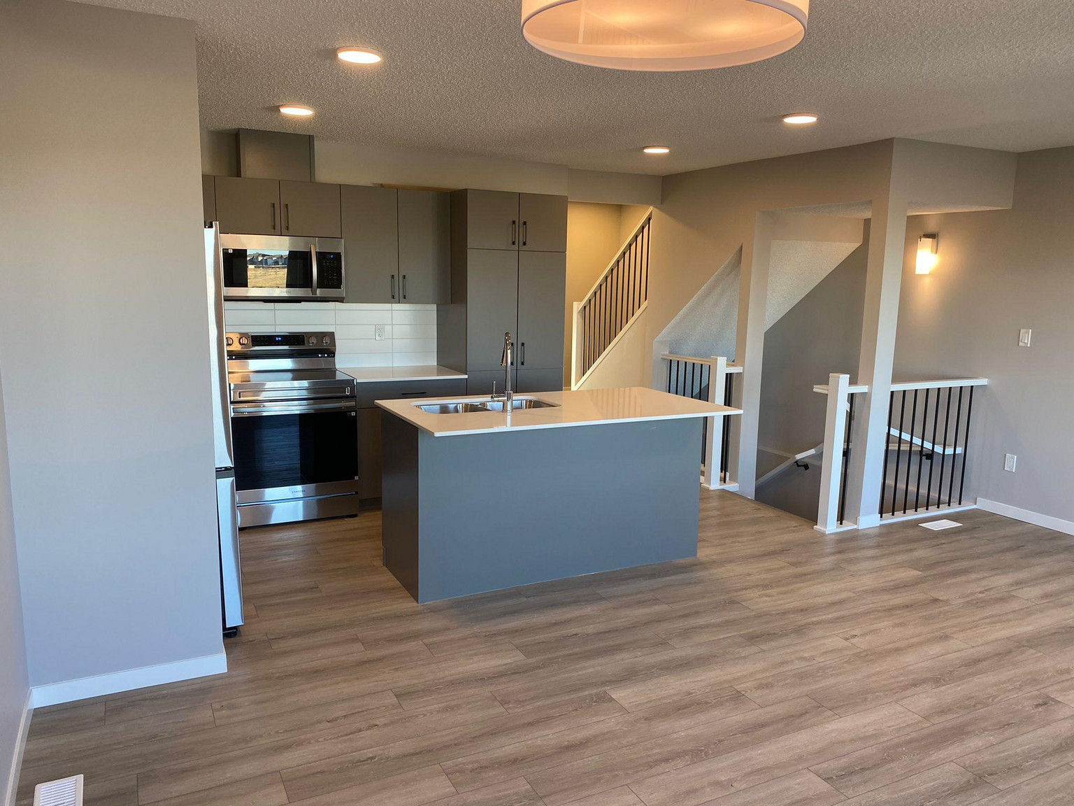 - Bright open-concept main floor with large windows and natural light