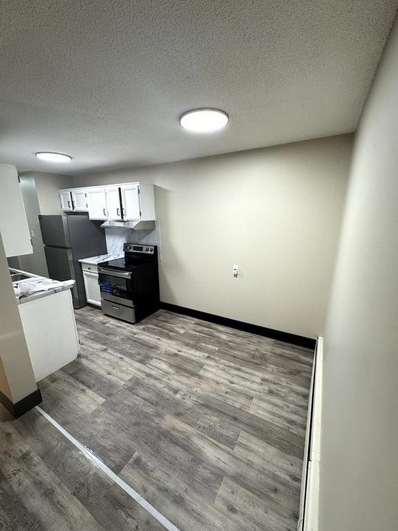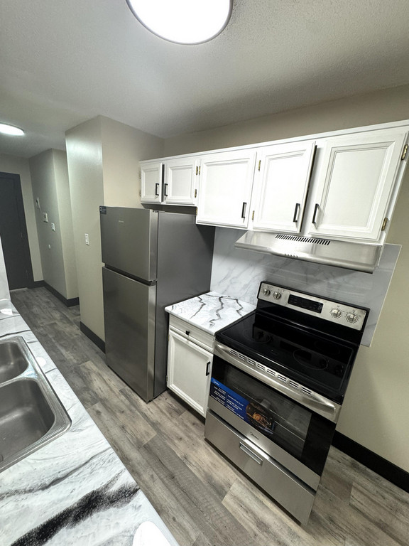 - Stainless steel appliances (fridge, stove, hood fan).