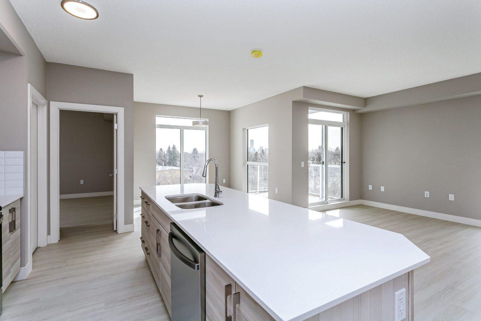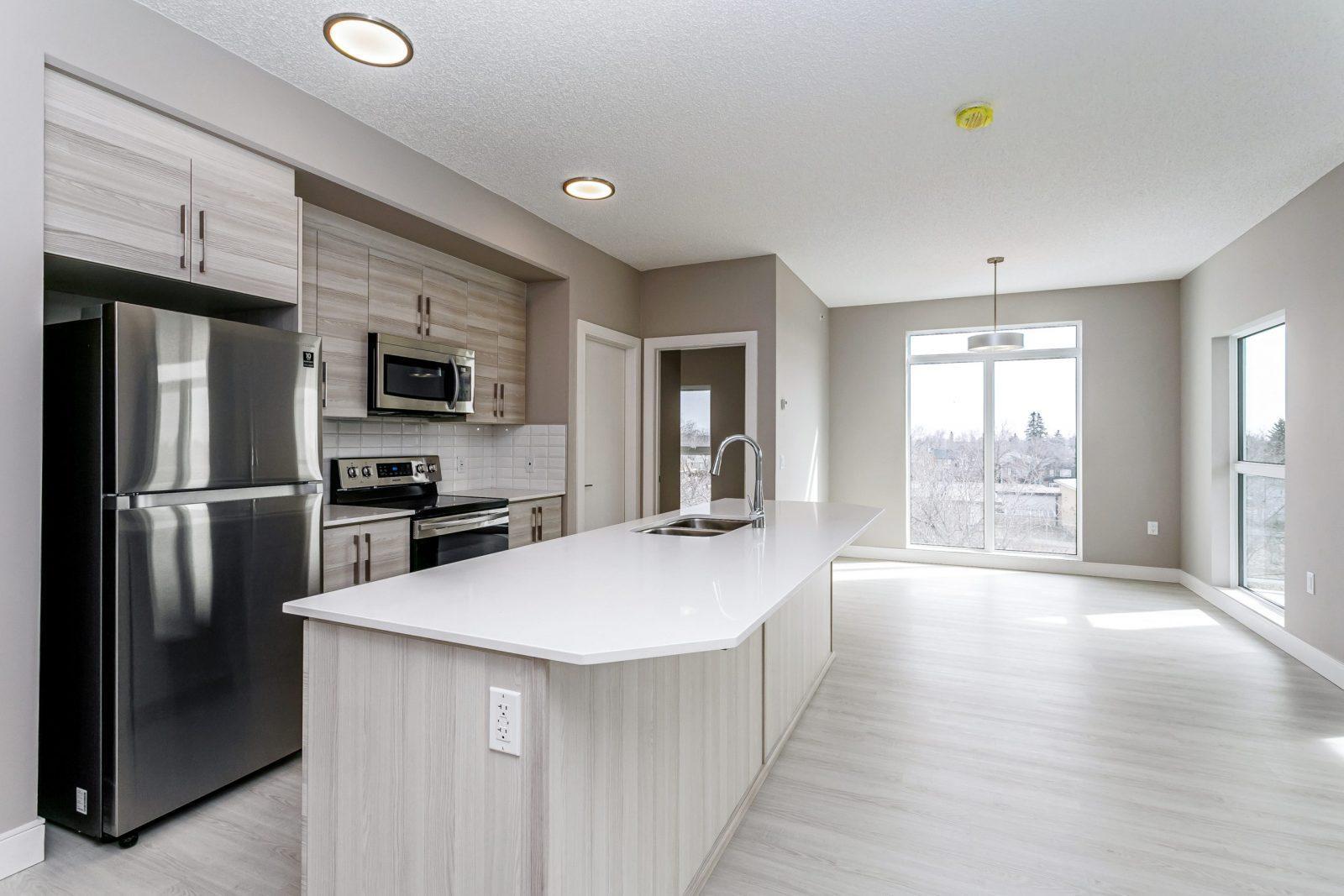Welcome to Greenstone Park, a stylish low-rise rental community in Edmonton’s desirable Inglewood neighbourhood. Built in 2021, this four-storey building offers 89 thoughtfully designed suites, including one-bedroom, one-bedroom plus den, and two-bedroom layouts ranging from approximately 787 to 1,108 square feet. Each suite features modern open-concept designs, quartz countertops with large kitchen islands, full-size in-suite laundry, vinyl plank flooring, 9-foot ceilings, and plenty of natural light with private balconies or expansive views.